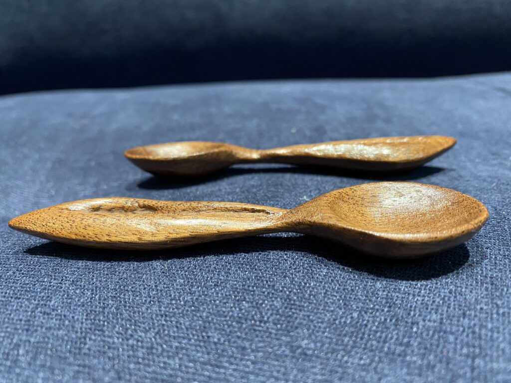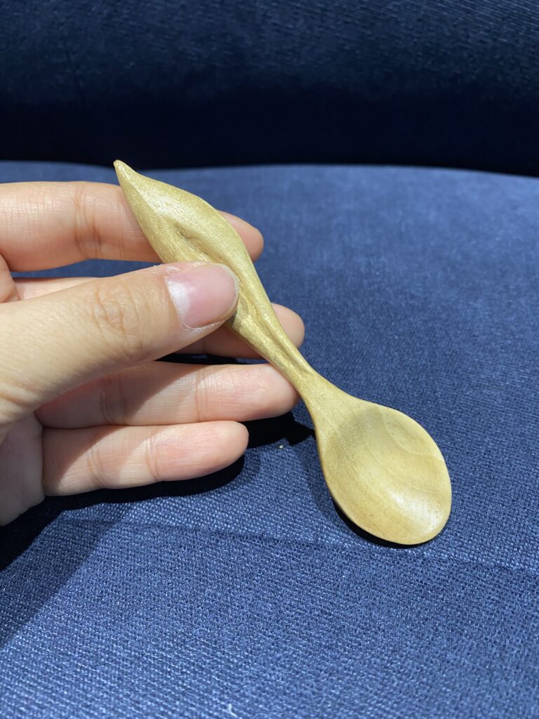 Since I was so pleased with the musical note-shaped spoon I made last time, I decided to create a dessert spoon in a similar shape. The dessert spoon was particularly challenging to craft due to its small size—about the size of my finger.